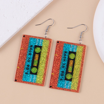 Cor fluorescente Fine Piscando Fita Magnética Retro Acrílico Brincos